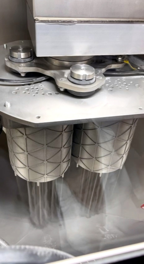 The depowdering process was carried out on the SFM-AT350 with a high-frequency knocker add-on.